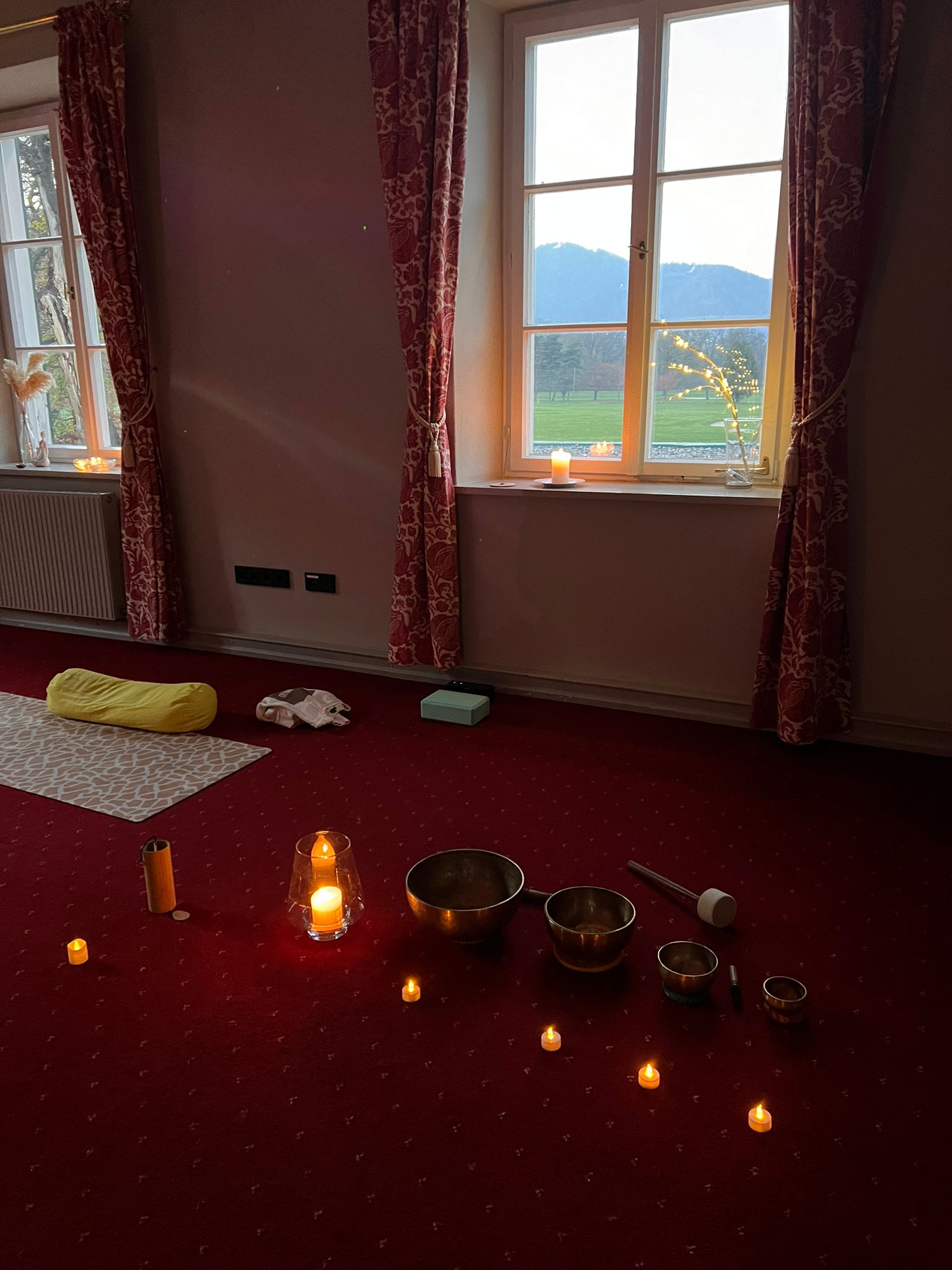 Weiteres Yoga Equipment steht dir alles zur Verfügung (Kissen, Decke, Augenkissen)